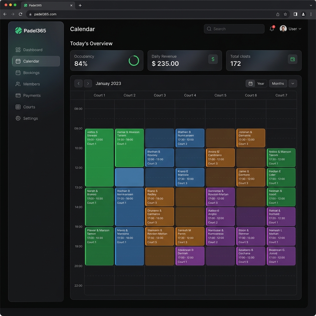 "Padel365 cambió la forma en que operamos. Redujimos el tiempo de administración a la mitad y nuestros ingresos aumentaron gracias a los precios dinámicos."